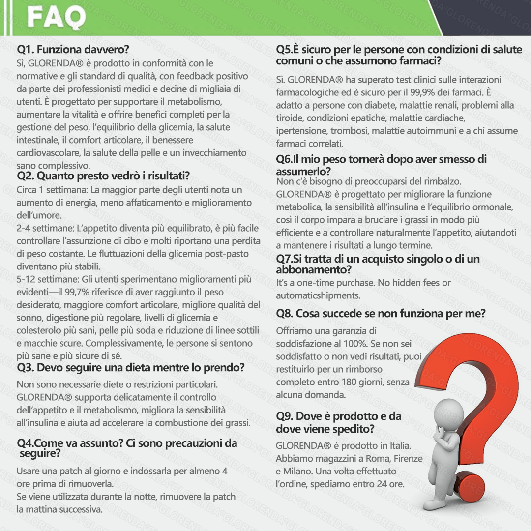 GFOUK®𝑴𝒐𝒓𝒊𝒏𝒈𝗮 · 𝗕𝗲𝗿𝗯𝗲𝗿𝙞𝙣𝙚 × 𝙉𝘼𝐃+ 𝟏𝟎-𝐢𝐧-𝟏 𝗔𝗱𝘃𝗮𝗻𝗰𝙚𝙙 𝙉𝙖𝙣𝙤 𝙈𝙞𝙘𝙧𝙤𝙣𝙚𝙚𝐝𝐥𝐞 𝐏𝐚𝐭𝙘𝙝 è stato sviluppato attraverso oltre 20 anni di ricerca da un team multidisciplinare di più di 30 esperti.Ogni patch integra un’architettura di microneedle ultra-sottili, con uno spessore pari a circa un settimo di quello di un capello umano, progettata per garantire un’applicazione fluida e praticamente indolore.La formulazione contiene composti bioattivi naturali altamente concentrati, fino a 20 volte superiori ai livelli convenzionali presenti sul mercato, inclusi Moringa e Berberina, che agiscono in sinergia per supportare risposte glicemiche sane, la regolazione dell’appetito e il metabolismo lipidico, favorendo così una gestione del peso graduale e sostenibile.Arricchita con NAD+, la patch supporta ulteriormente la compattezza della pelle e la resilienza strutturale durante le variazioni di peso corporeo, contribuendo a mantenere un aspetto snello senza compromettere comfort o estetica.Ulteriori componenti ad alta efficacia contribuiscono al supporto della funzione immunitaria, della salute digestiva, dell’equilibrio intestinale, della salute femminile, dei livelli energetici quotidiani e della riduzione della stanchezza, promuovendo nel complesso uno stato fisiologico più giovane e resiliente dall’interno.Prodotto in stabilimenti conformi agli standard di qualità italiani ed europei, questa soluzione senza aghi e guidata dalla scienza offre un approccio sicuro e completo alla gestione efficace del peso e alla salute metabolica a lungo termine, progettata per lavorare in armonia con il corpo, non contro di esso.